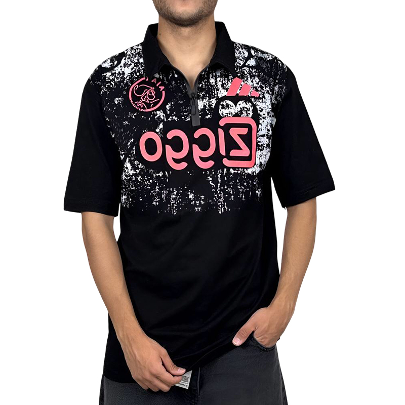 ناموجودتیشرت آستین کوتانه مردانه مشکی یقه دار با طرح گرافیکی صورتی