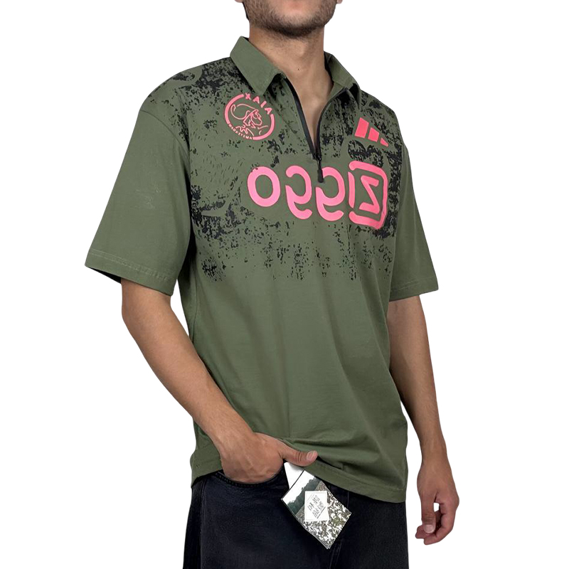 ناموجودتیشرت آستین کوتانه مردانه سبز یقه دار با طرح گرافیکی صورتی