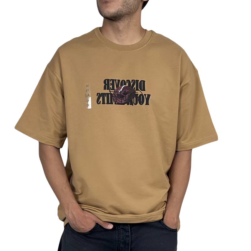 تیشرت آستین کوتاه مردانه کرمی طرح باکسی