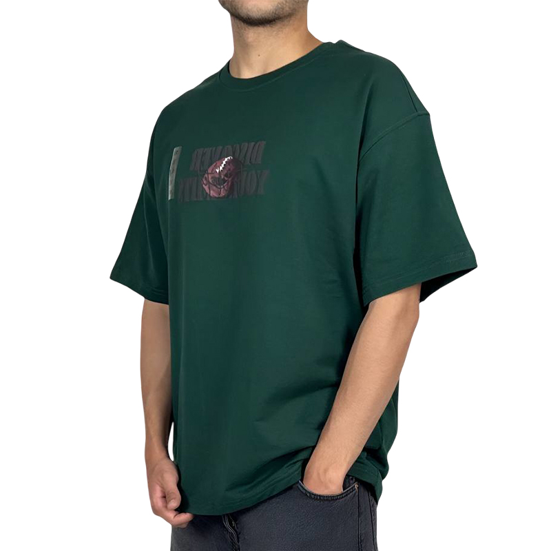 ناموجودتیشرت آستین کوتاه مردانه سبز مچینست طرح باکسی