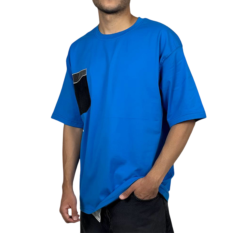 ناموجودتیشرت آستین کوتاه مردانه آبی با طرح جیب مشکی