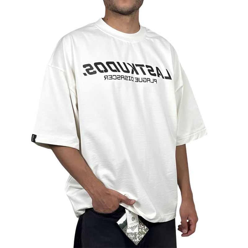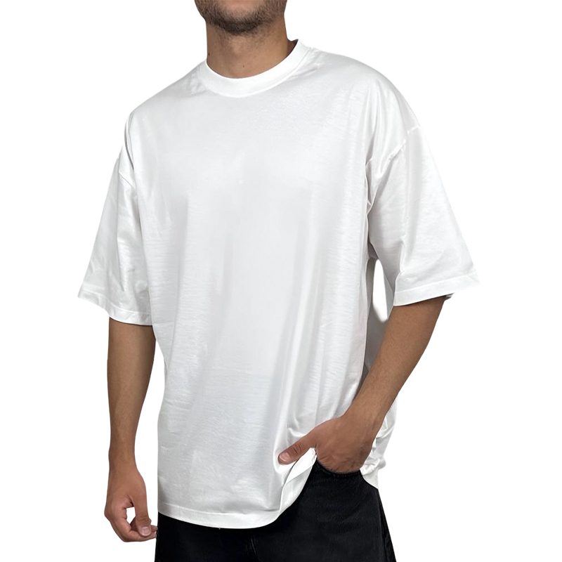 تیشرت آستین کوتاه مردانه سفید مچینست طرح باکسی