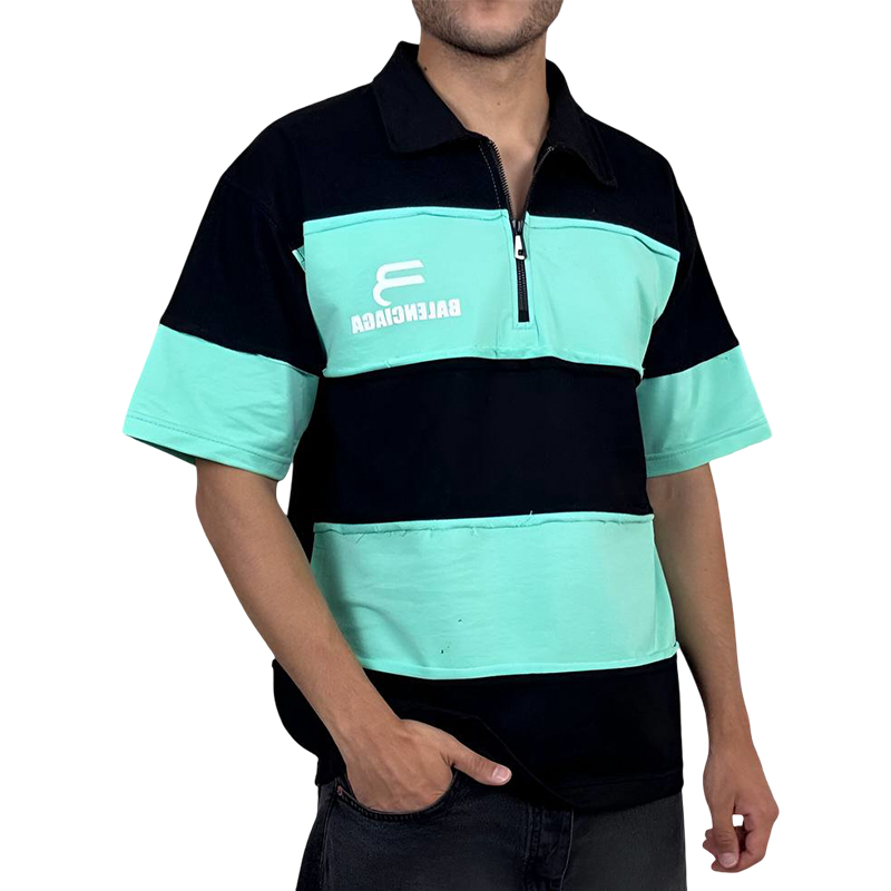 ناموجودتیشرت آستین کوتاه مردانه راه راه مشکی و سبز با زیپ یقه