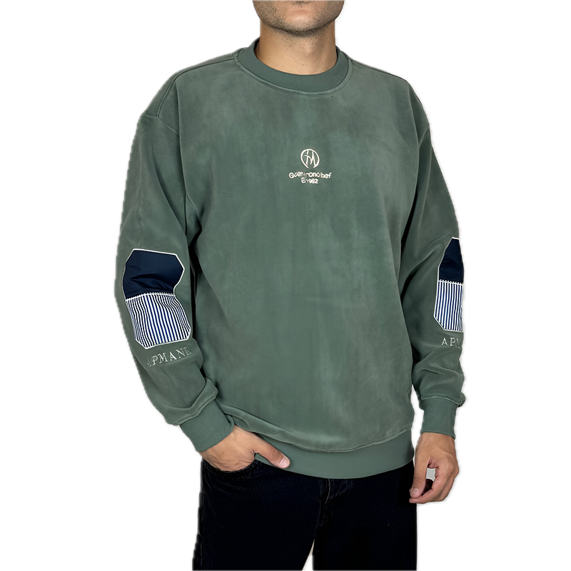 لژهای آرنج (Elbow Patches): مهمترین نقطه قوت بصری این محصول، استفاده از تکههای زرد خردلی روی آرنج است که بلافاصله استایل لباس را از حالت ساده خارج کرده و ظاهری کژوال، اسپرت و تا حدودی وینتیج به آن میبخشد.