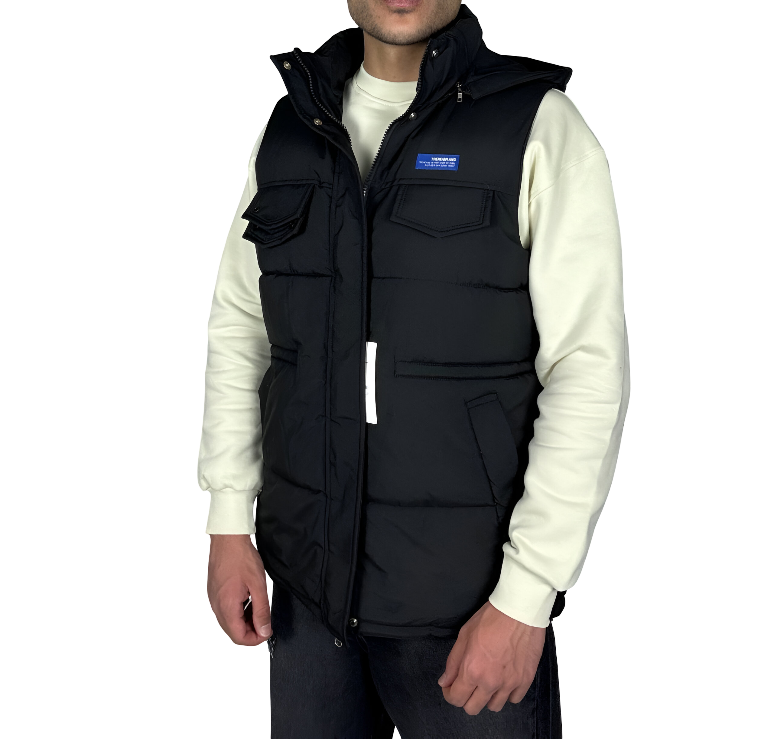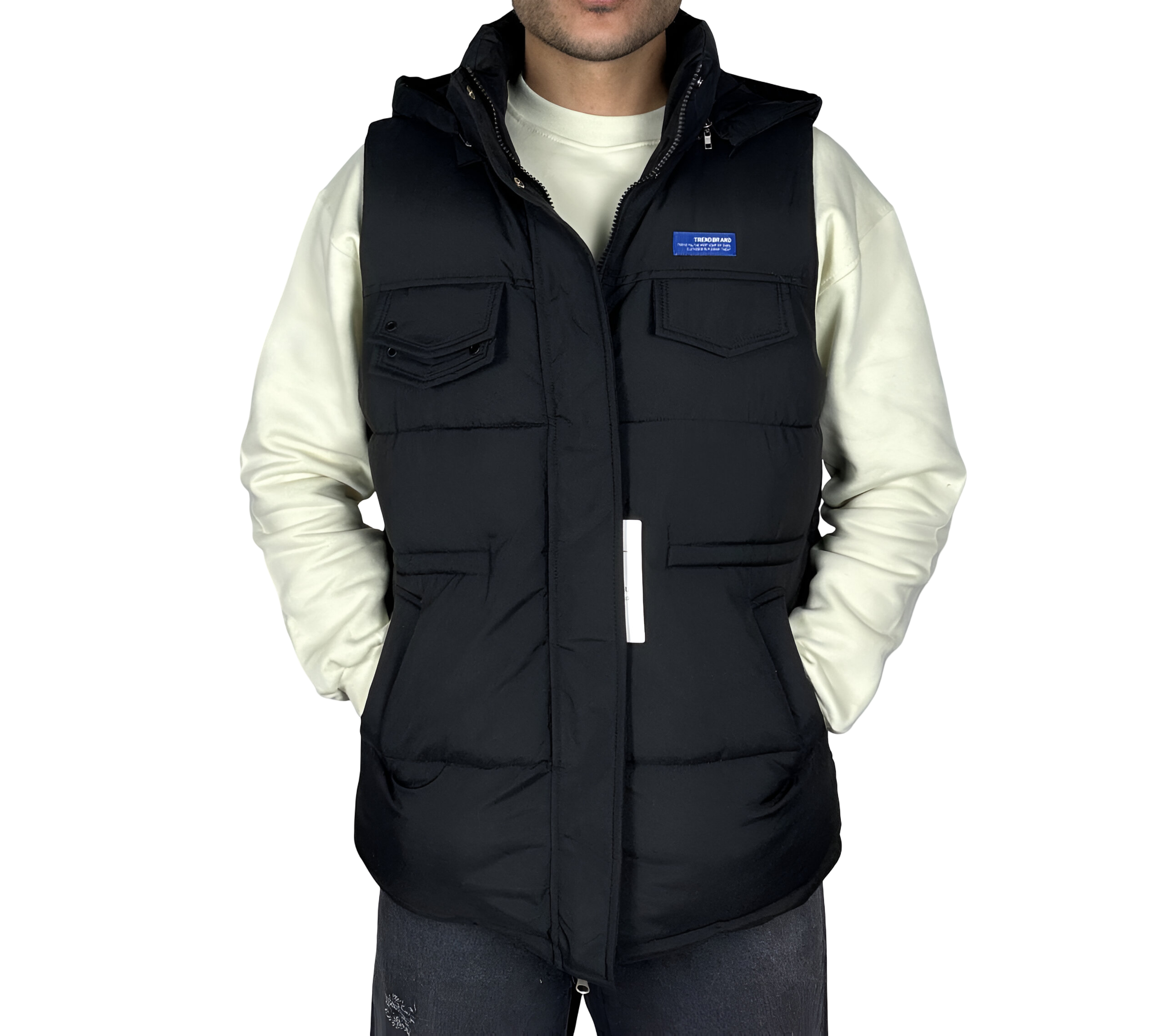 جلیقه پافر (بادی) کلاهدار مردانه - مشکی - مدل جیبدار تاکتیکال
