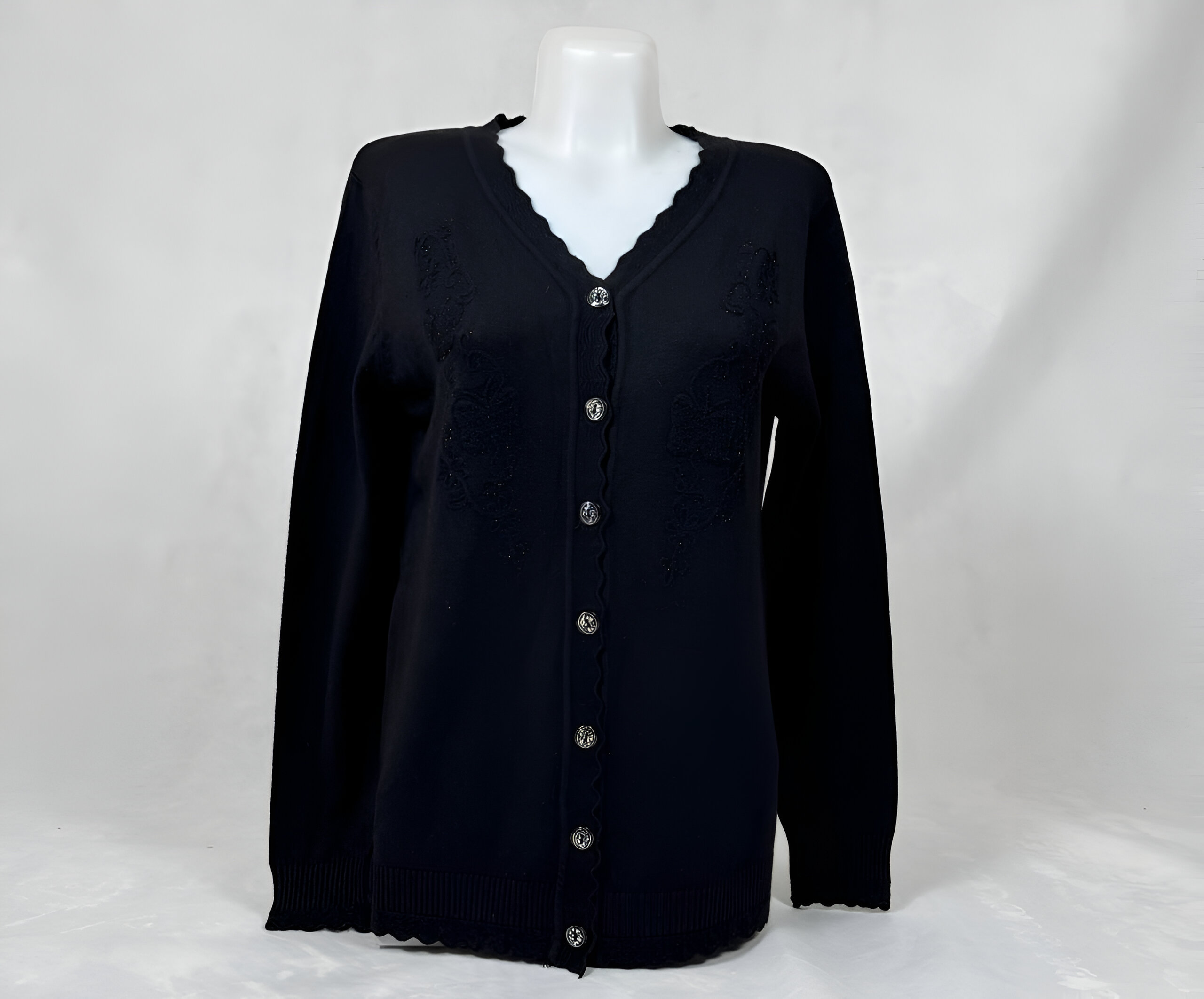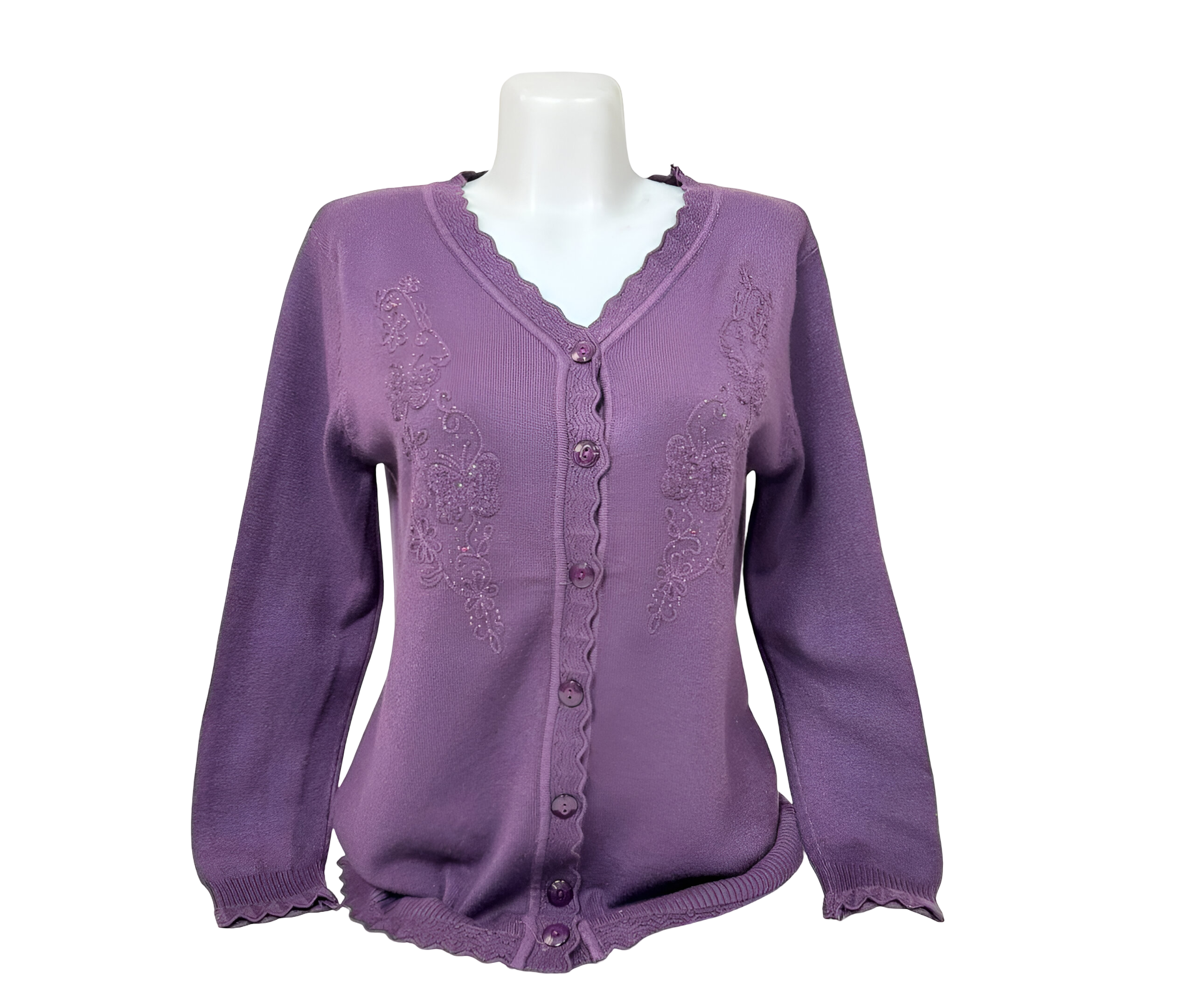 کاردیگان زنانه طرح گلدوزی | ژاکت یقه هفت مجلسی (لبه موجدار)