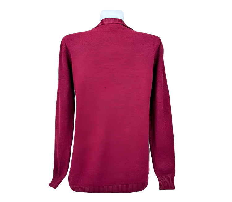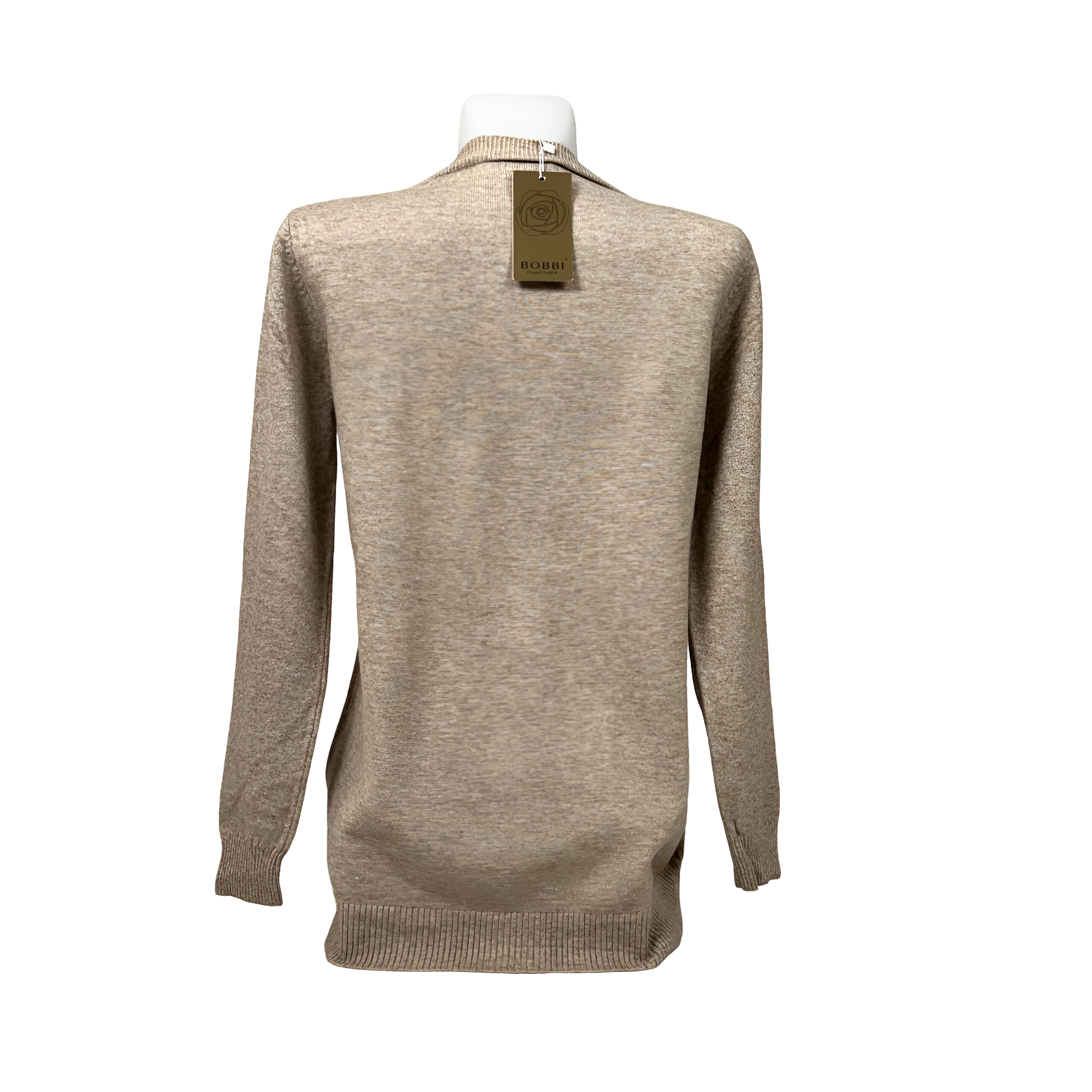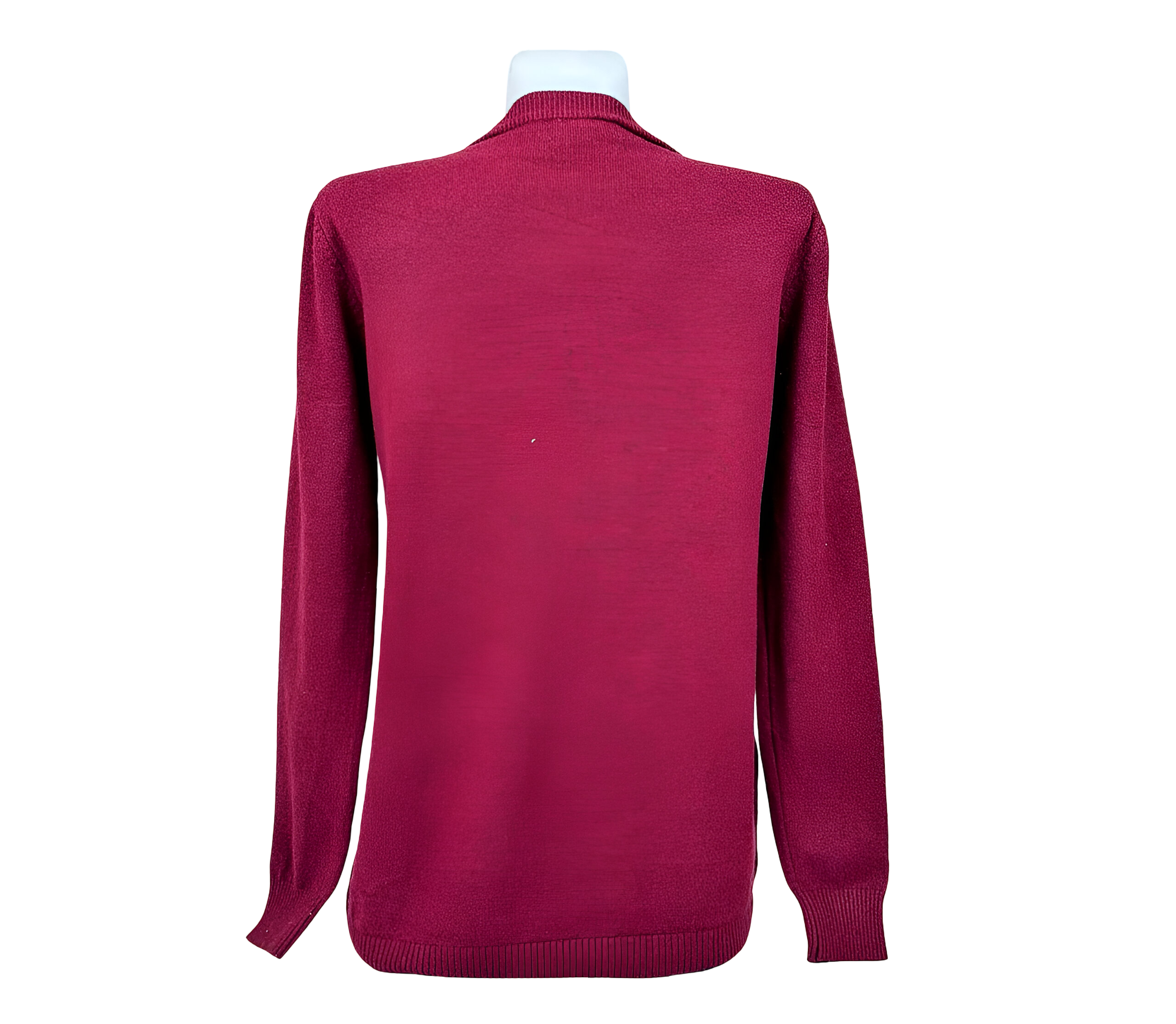 یقه هفت شیک: مدل یقه V شکل این ژاکت، گردن را کشیدهتر نشان داده و فضای مناسبی برای نمایش انواع گردنبندهای ظریف یا یقه زیرپوشهای دانتل ایجاد میکند.