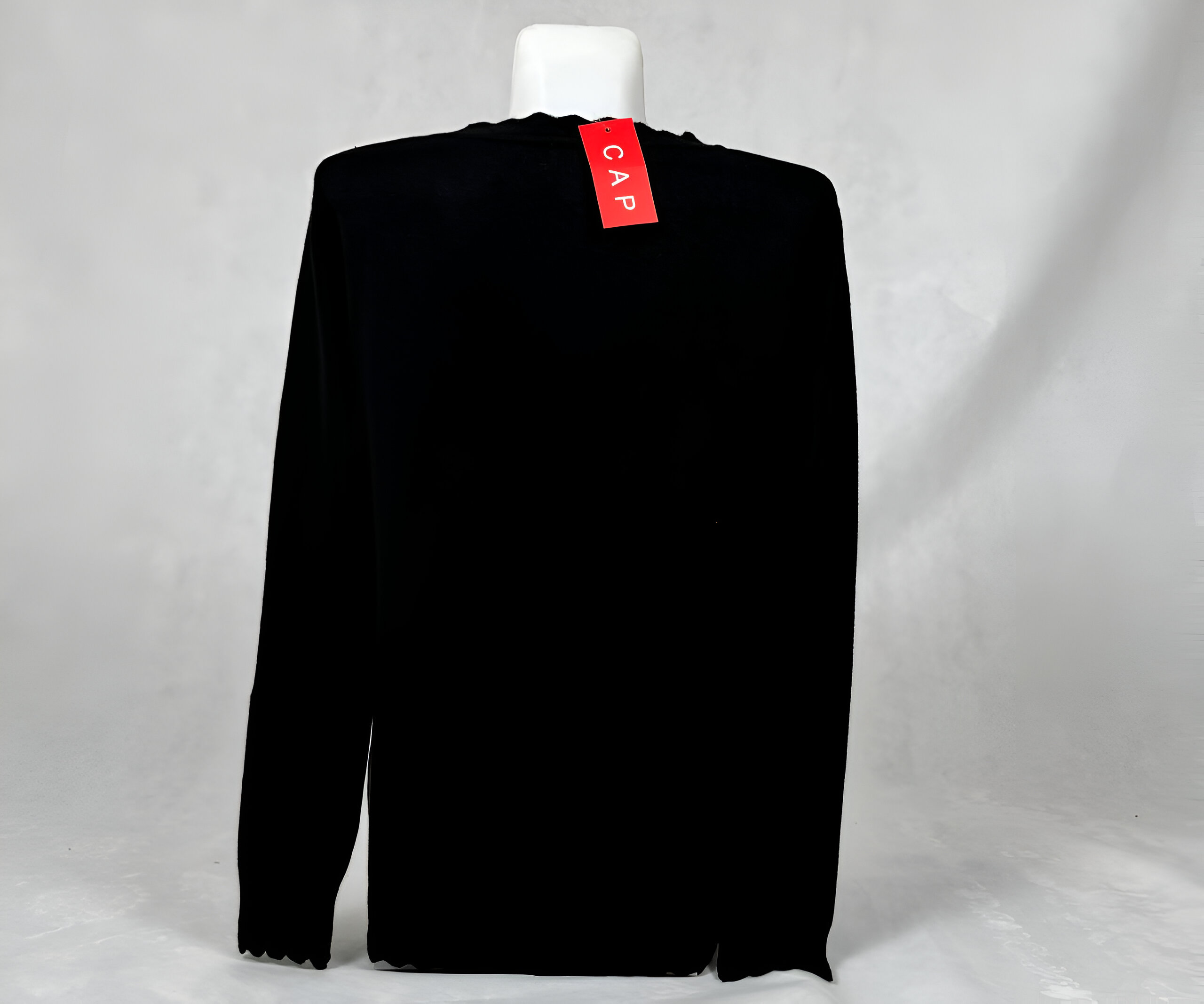 لبههای متفاوت (صدفی/موجدار): در برخی رنگها، لبههای یقه و پایین کار با طرح موجدار (صدفی) دوخته شدهاند که حس ظرافت و فاخر بودن کار را تقویت میکند.