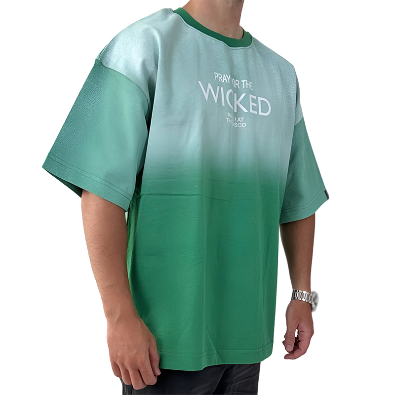 ترکیب دو رنگ سبز و افکت گرادیانی این تیشرت، در نگاه اول خاص بودنش رو نشون میده. چاپ “Pray for the Wicked” الهامگرفته از فضای موسیقی و فرهنگ خیابانیه و کاملاً با ترند روز هماهنگه.