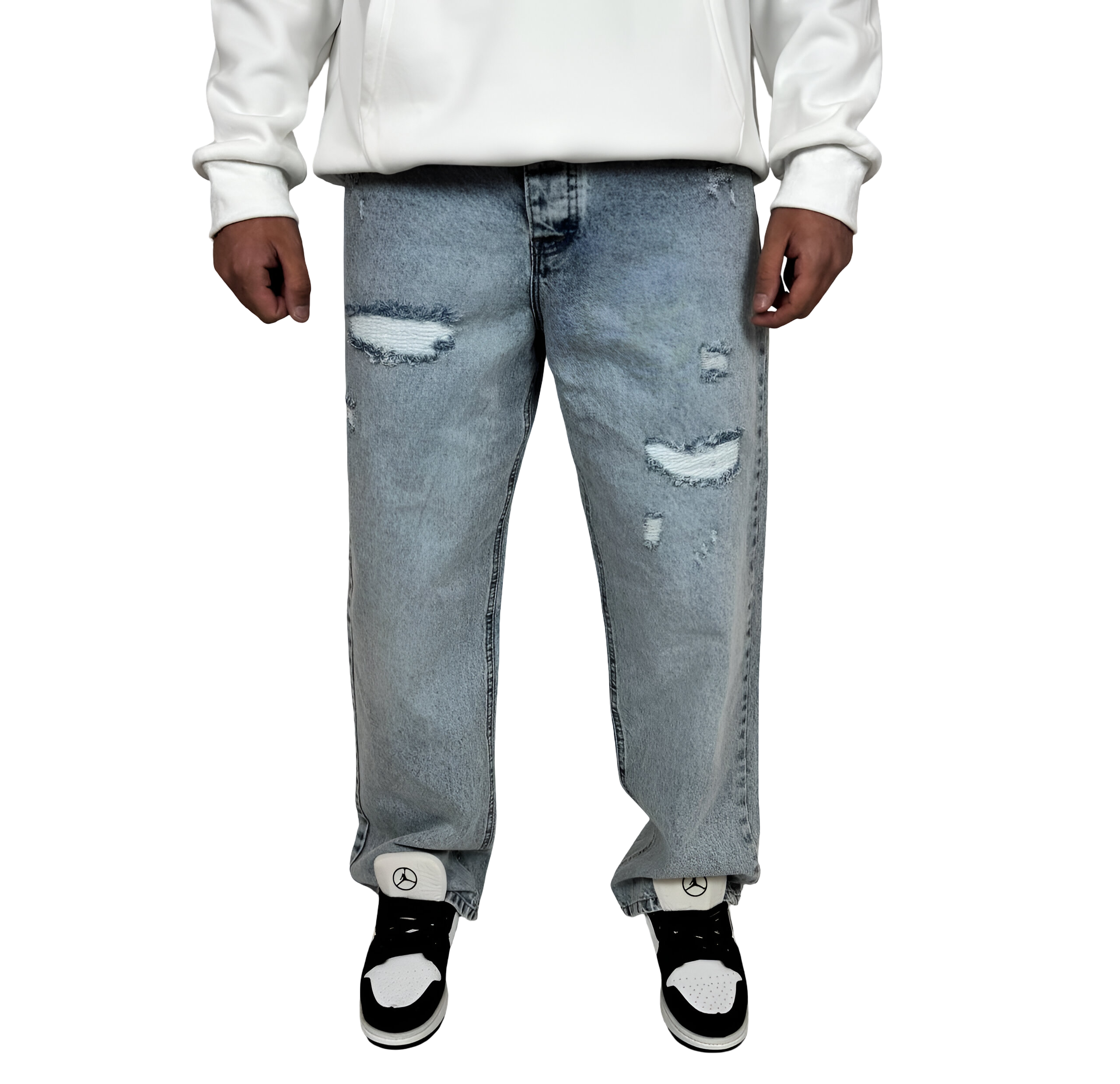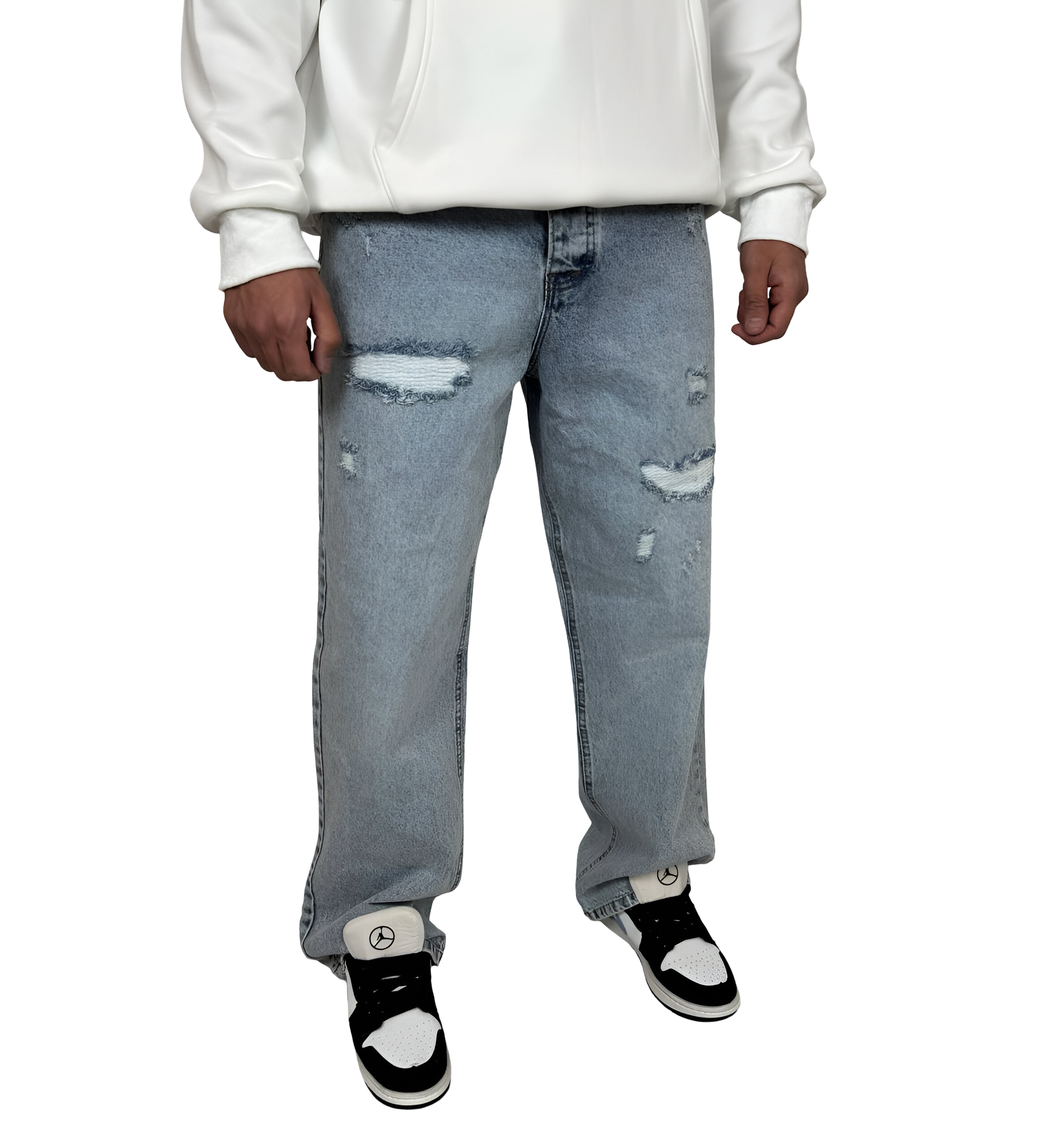 شلوار جین مردانه بگ فیت (Baggy Fit) - رنگ آبی یخی زاپ‌دار - فیت لش
