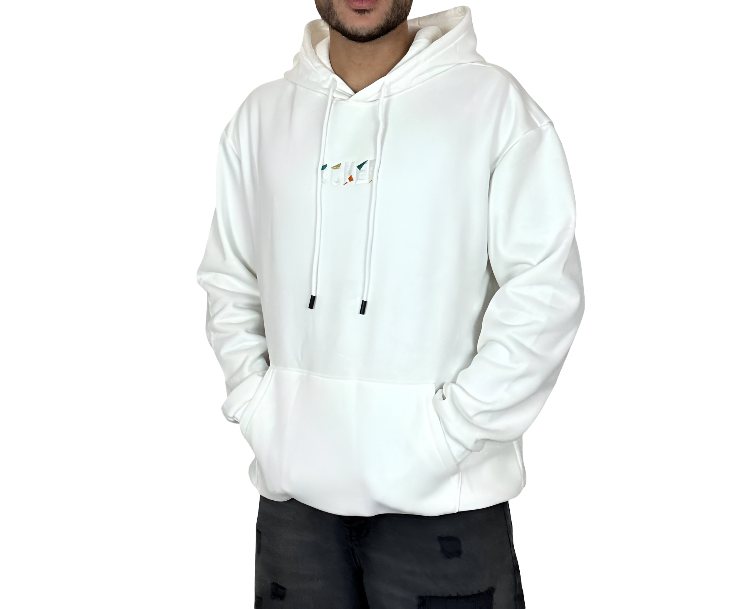 هودی سفید اورسایز گرافیکی SCKER - طرح چاپ پُشت - مناسب استایل یونیسکس