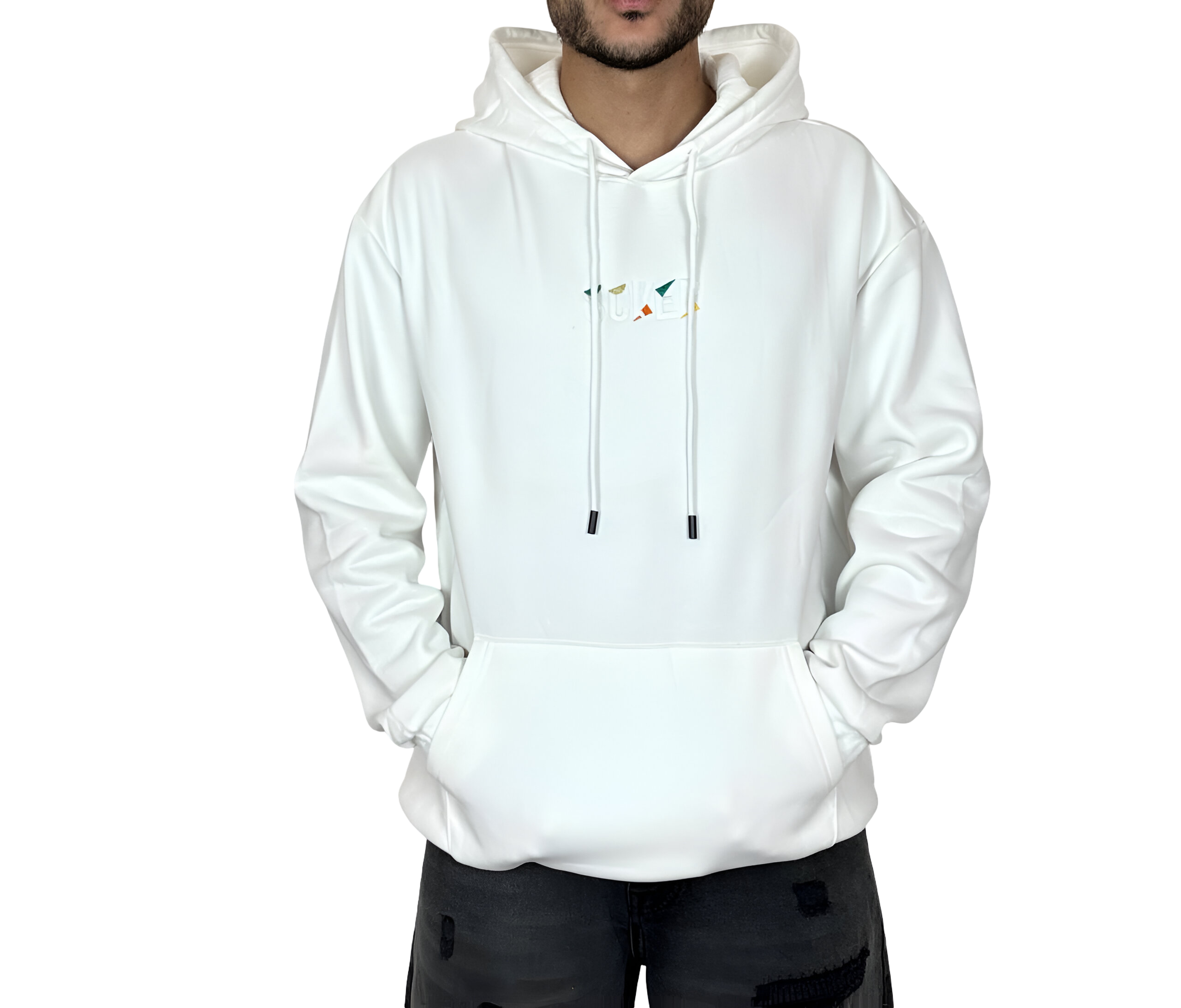خرید هودی سفید اورسایز گرافیکی SCKER - طرح چاپ پُشت - مناسب استایل یونیسکس
