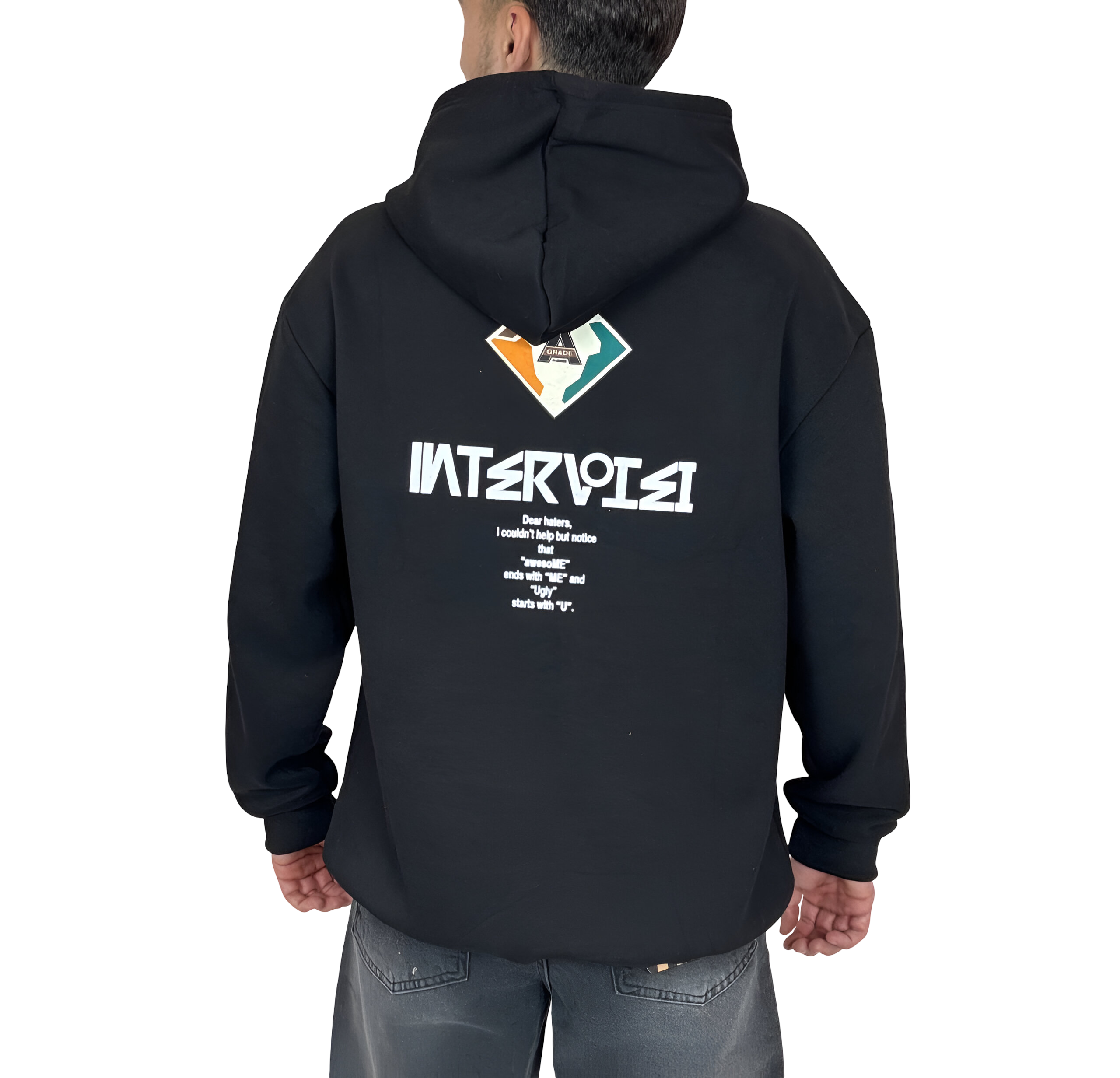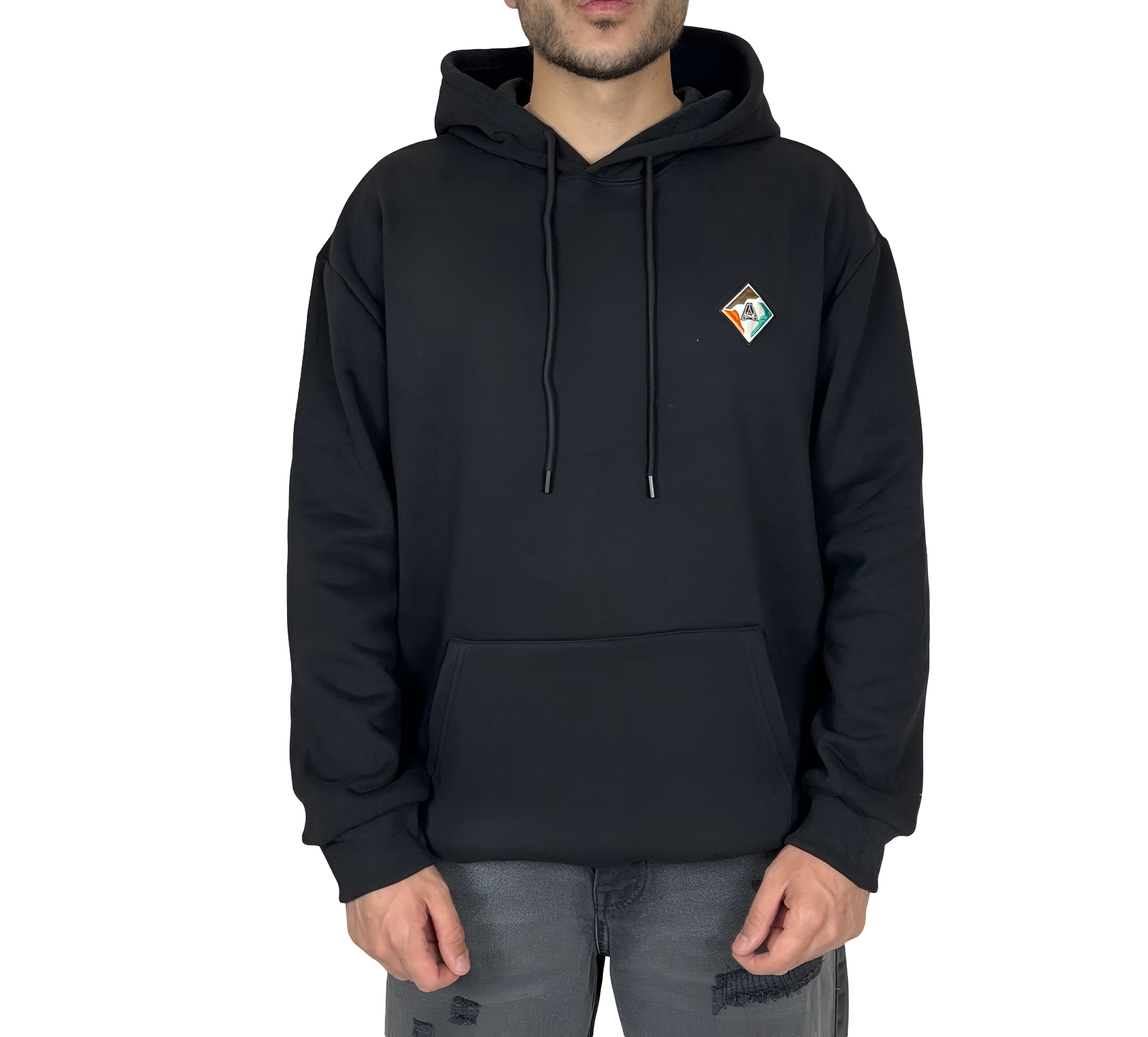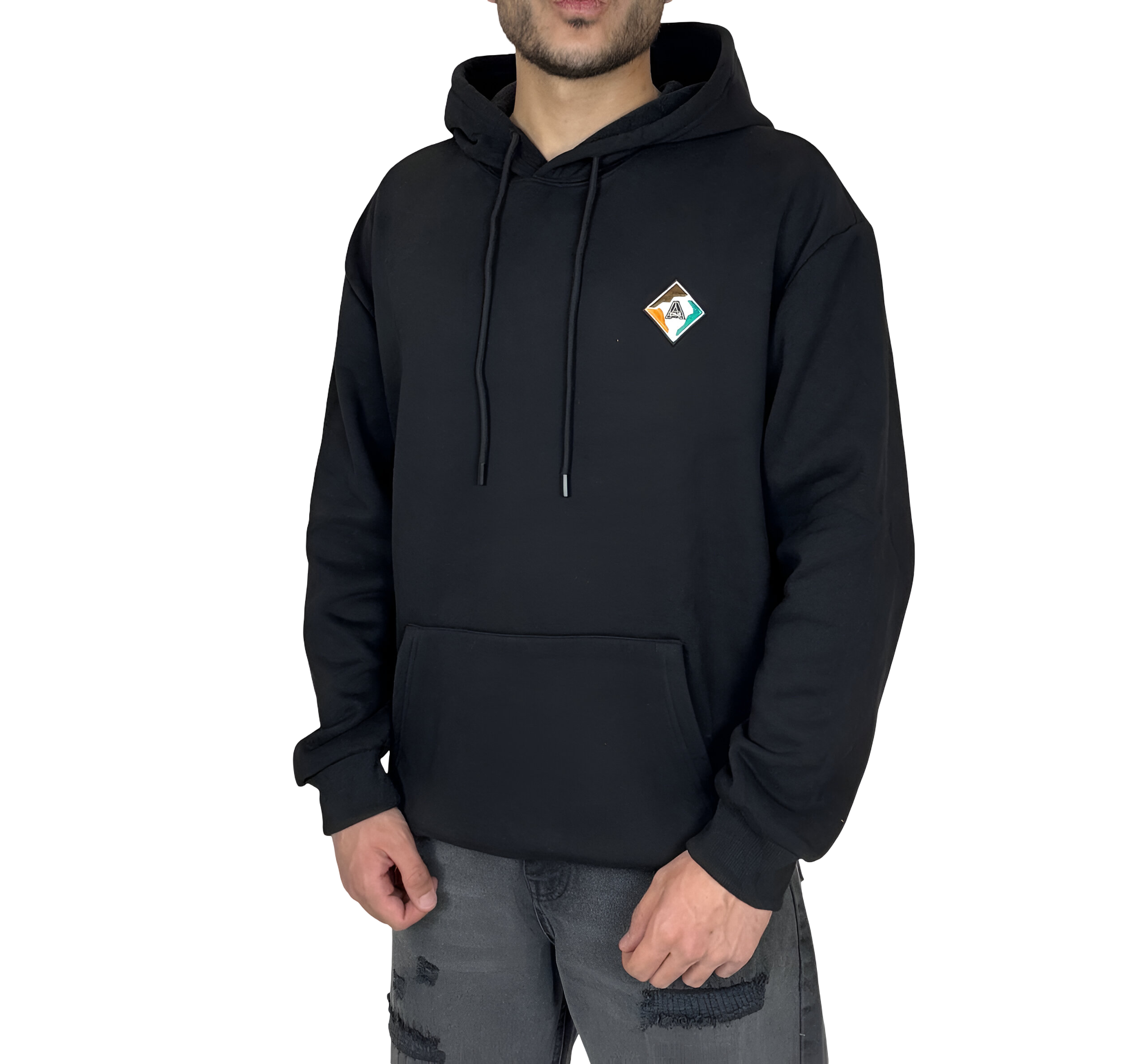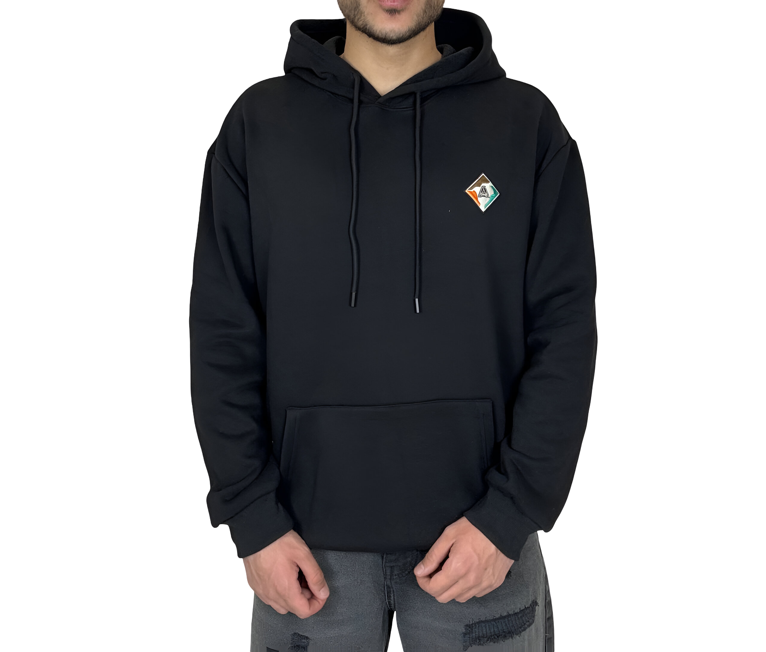 هودی مشکی کلاهدار اورسایز مردانه مشکی MONO با لوگوی لوزی و چاپ پشت
