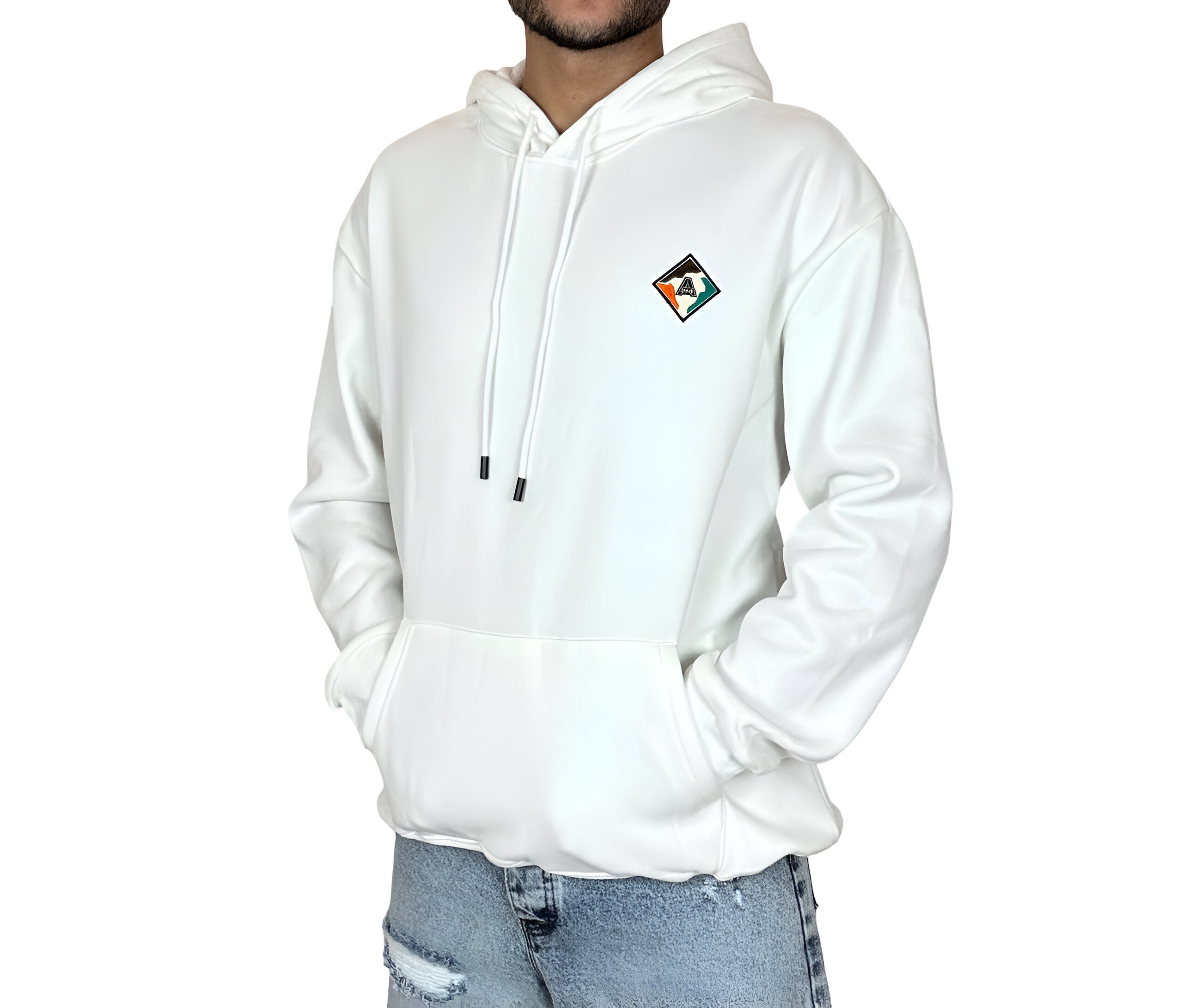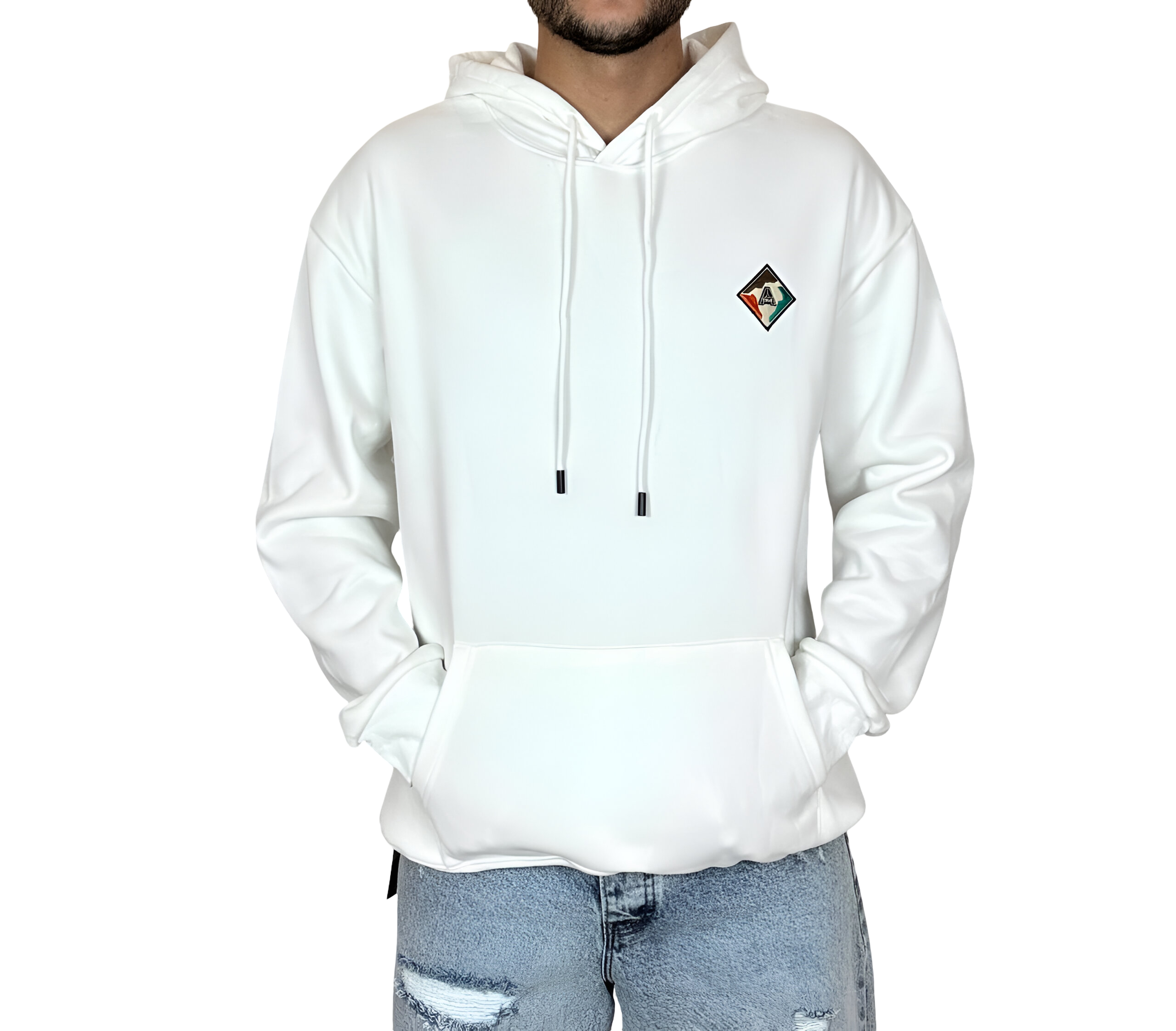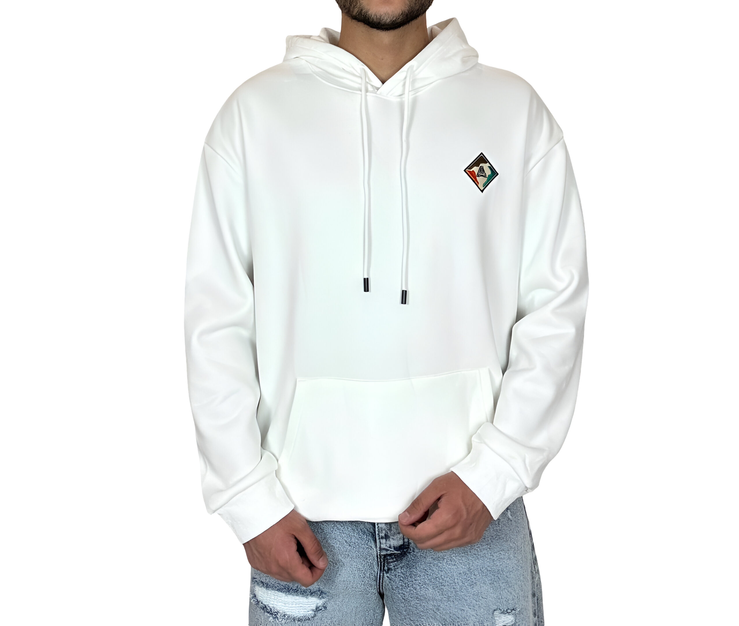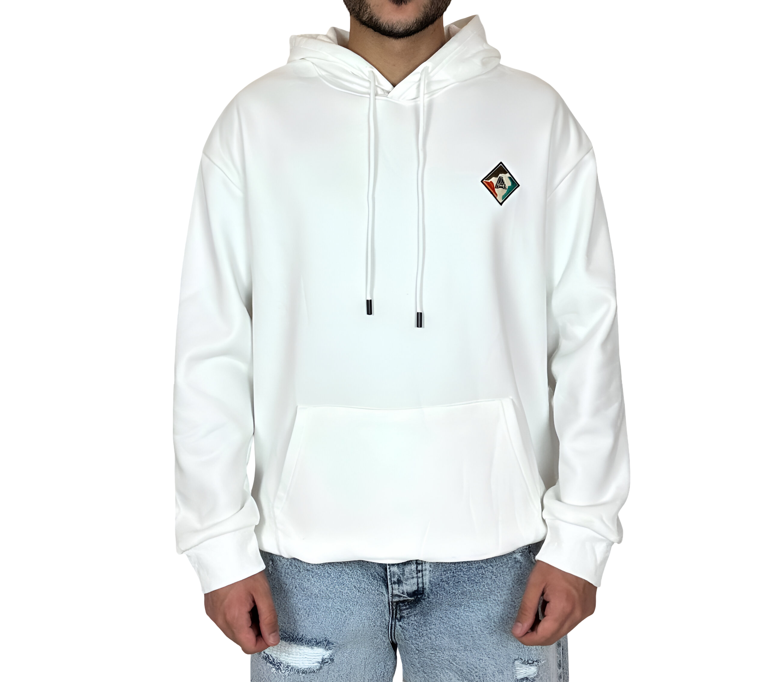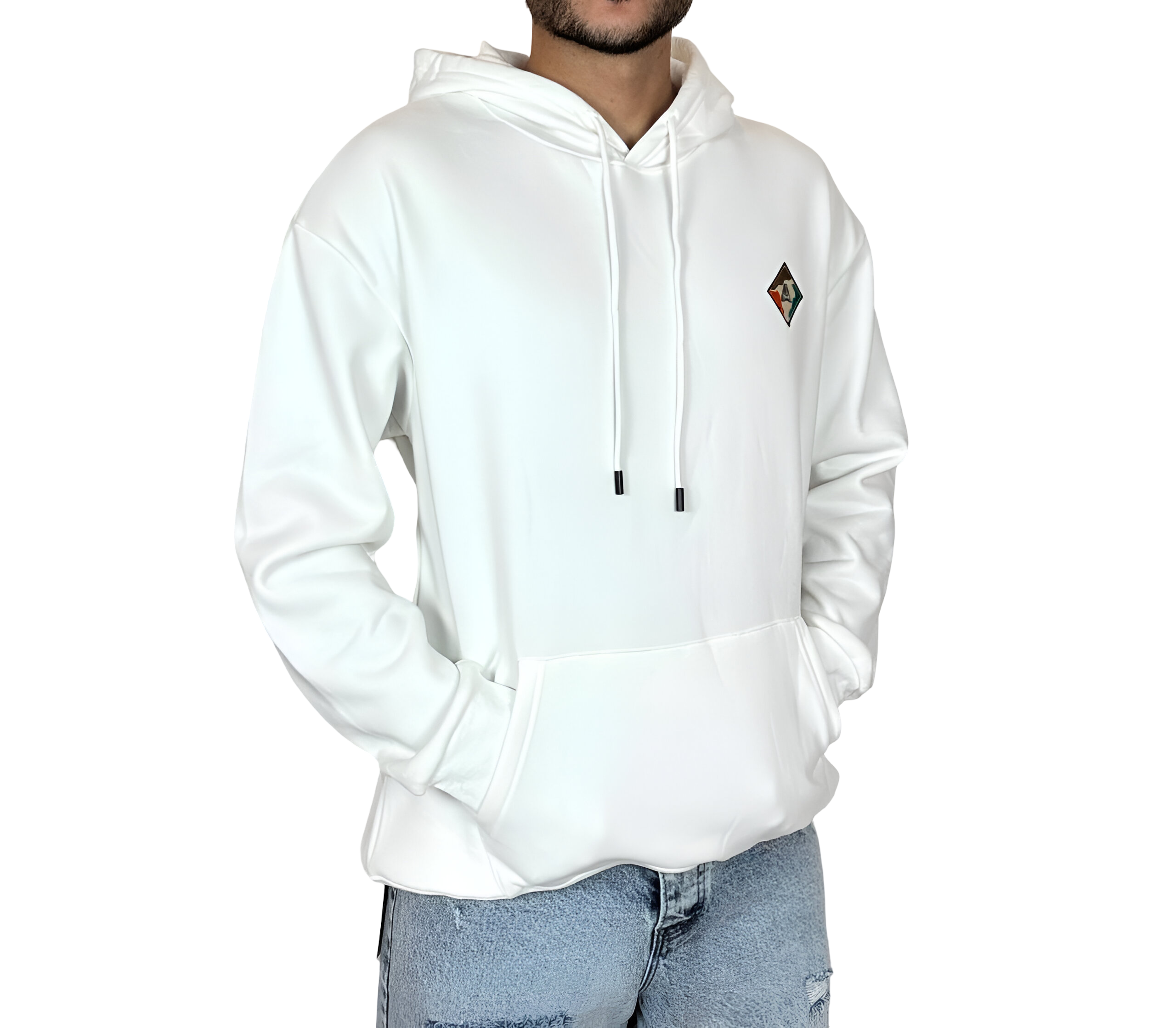 هودی سفید کلاهدار اورسایز مردانه مشکی MONO با لوگوی لوزی و چاپ پشت