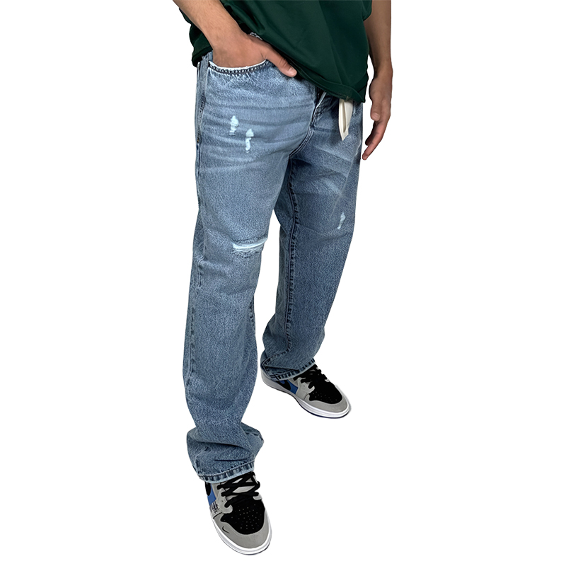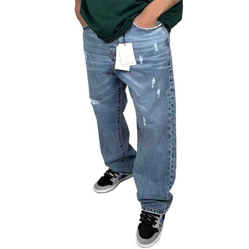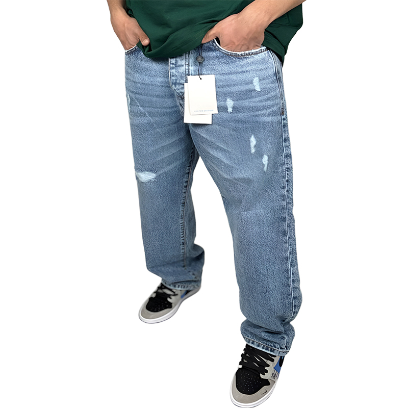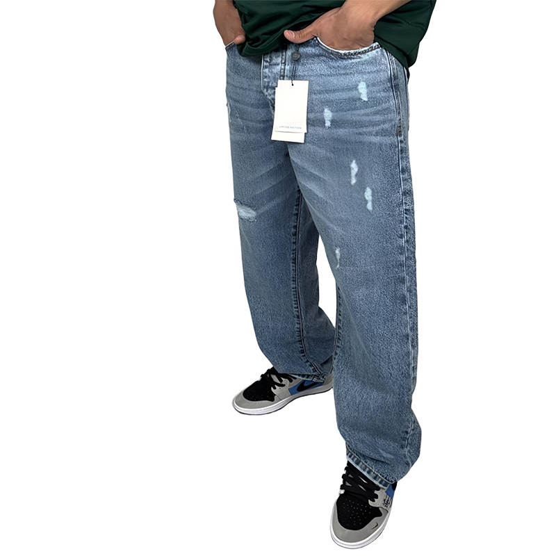 شلوار جین زاپ دار مردانه بگ استایل|رنگ آبی روشن|مدل خیابانی مدروز