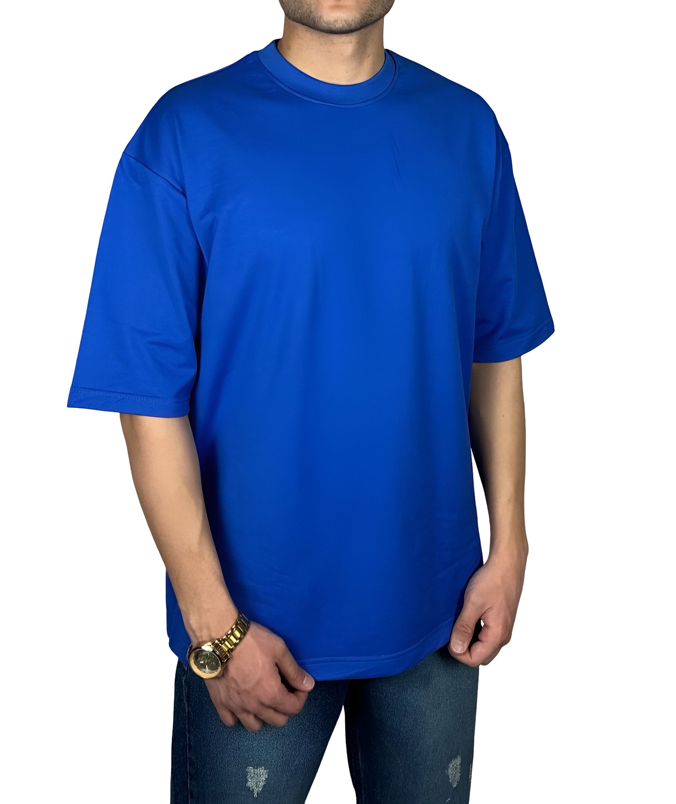 تیشرت آبی ساده پارچه ماکان گرم دار