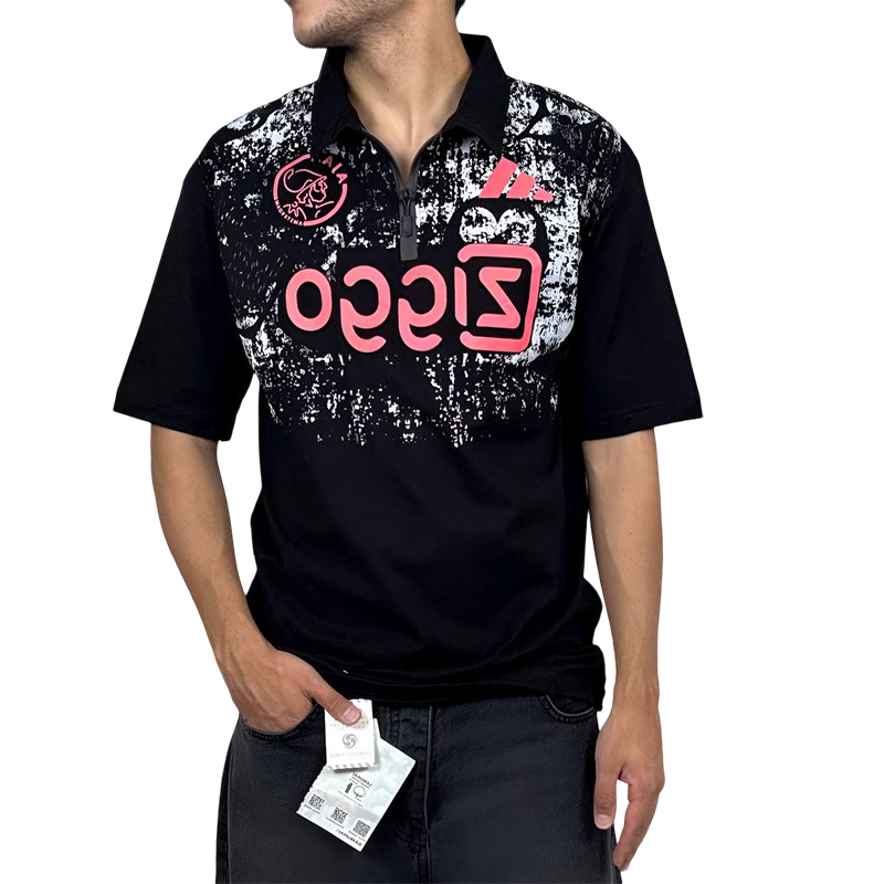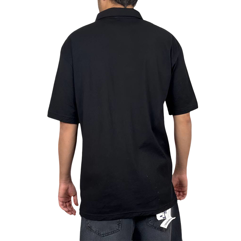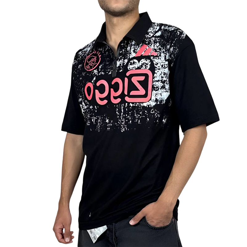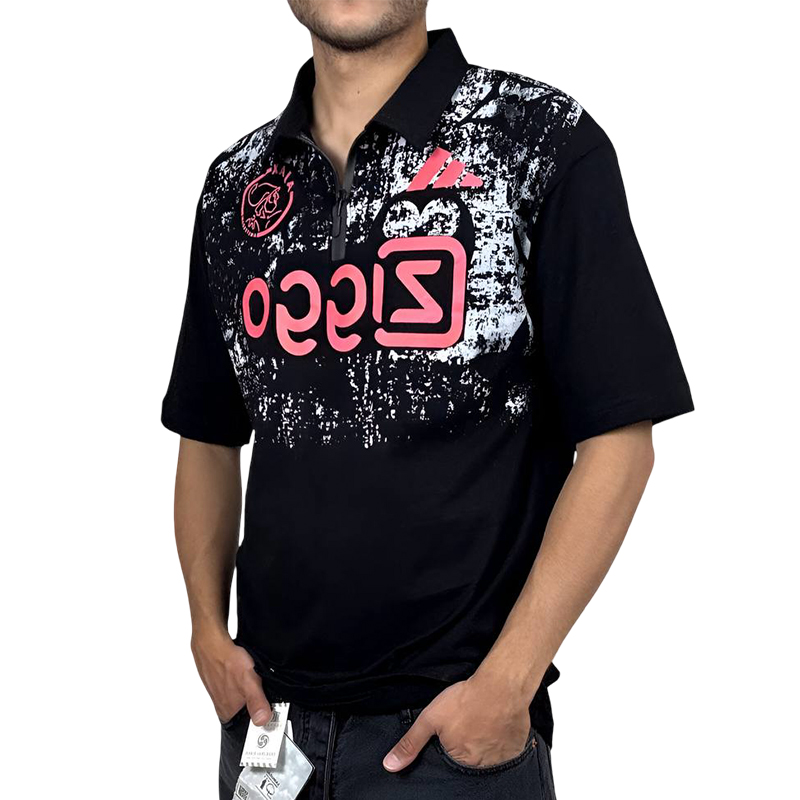 تیشرت آستین کوتانه مردانه مشکی یقه دار با طرح گرافیکی صورتی