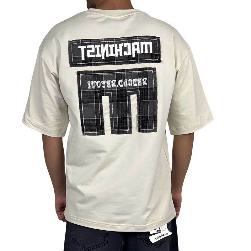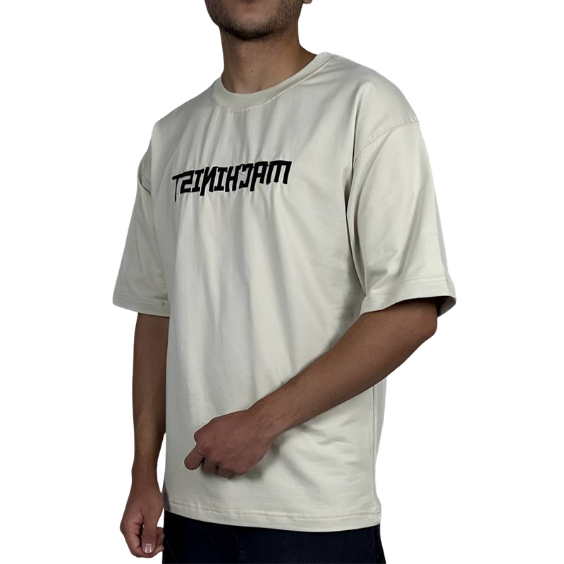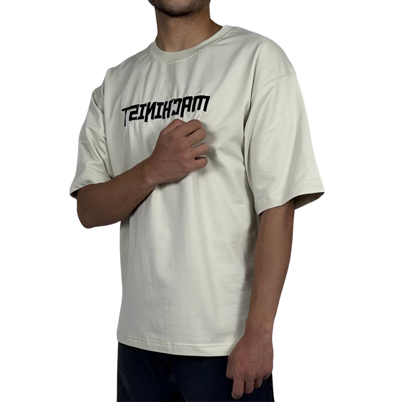 تیشرت آستین کوتاه مردانه سفید مچینست طرح باکسی