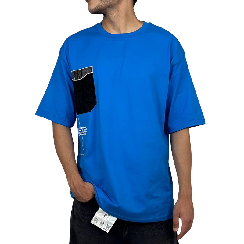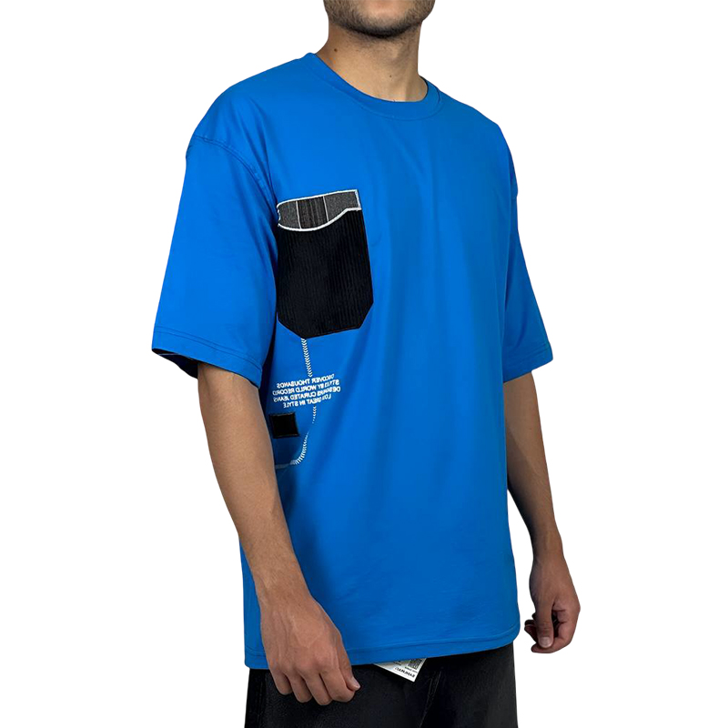 تیشرت آستین کوتاه مردانه آبی با طرح جیب مشکی