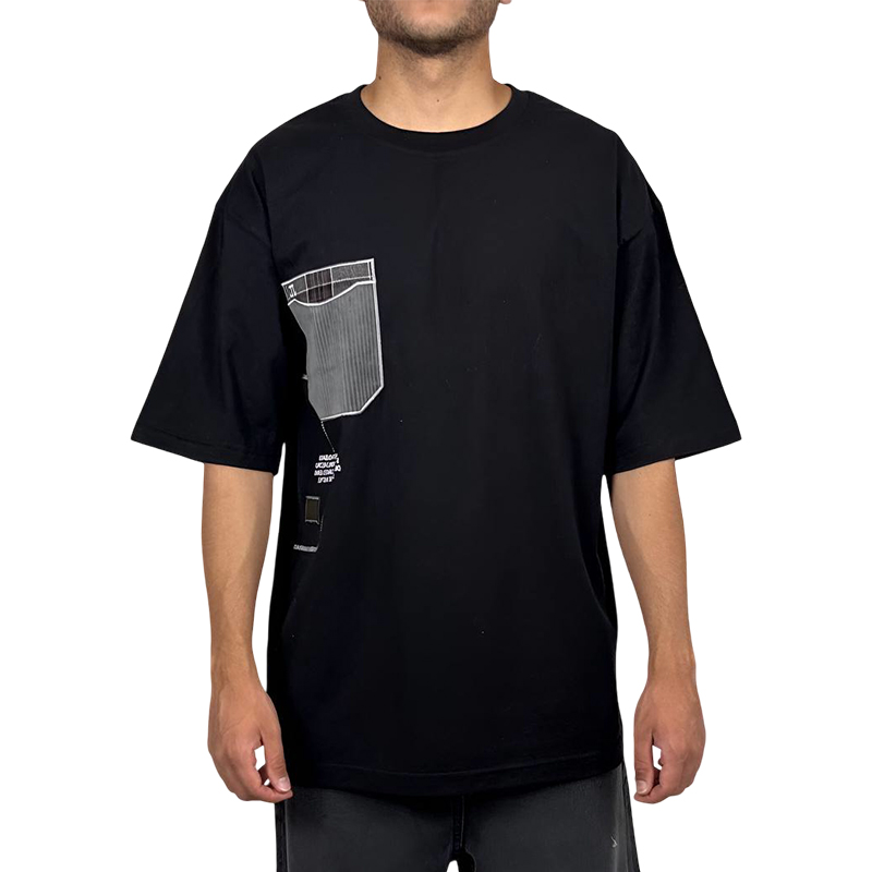 تیشرت آستین کوتاه مردانه مشکی با طرح جیب طوسی