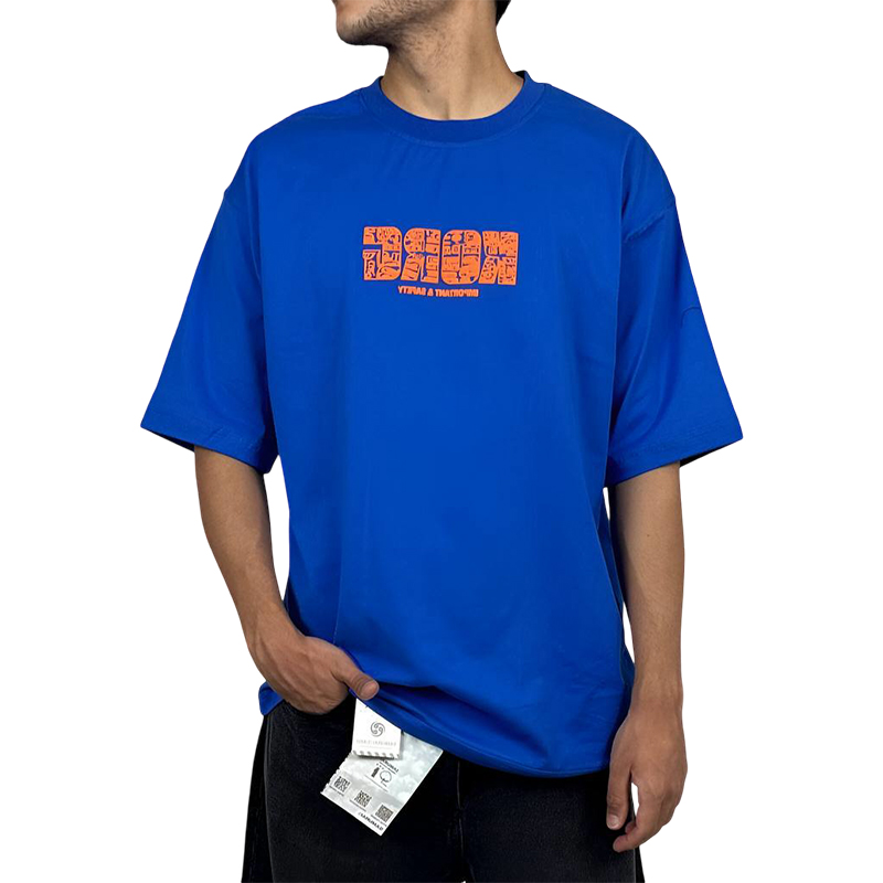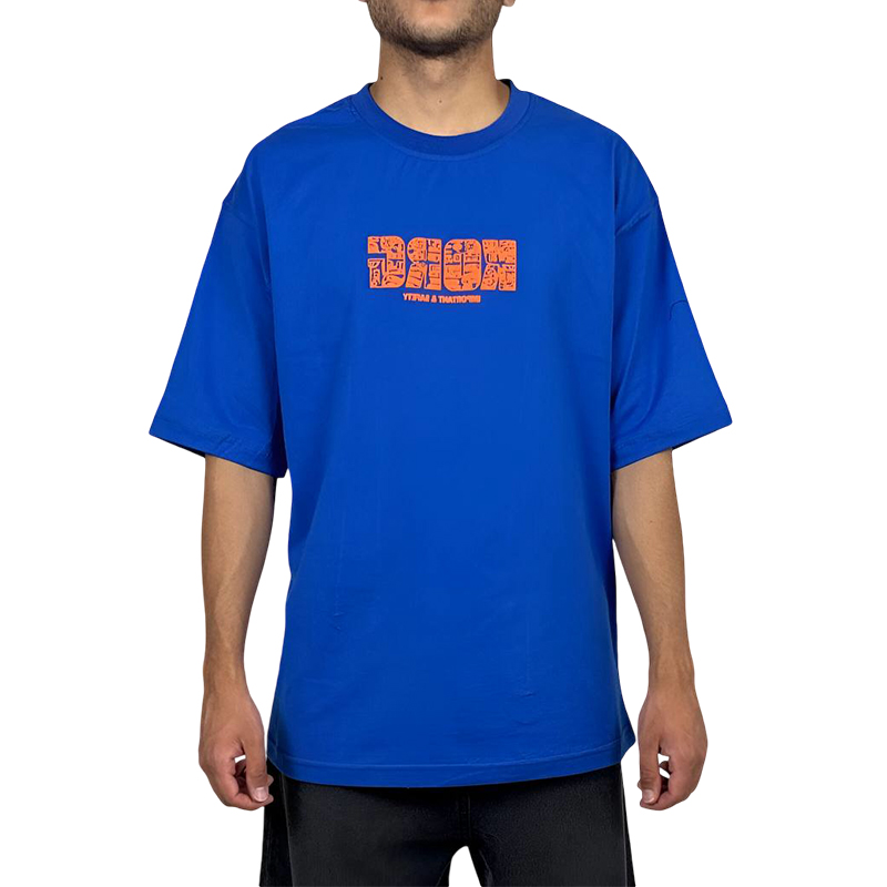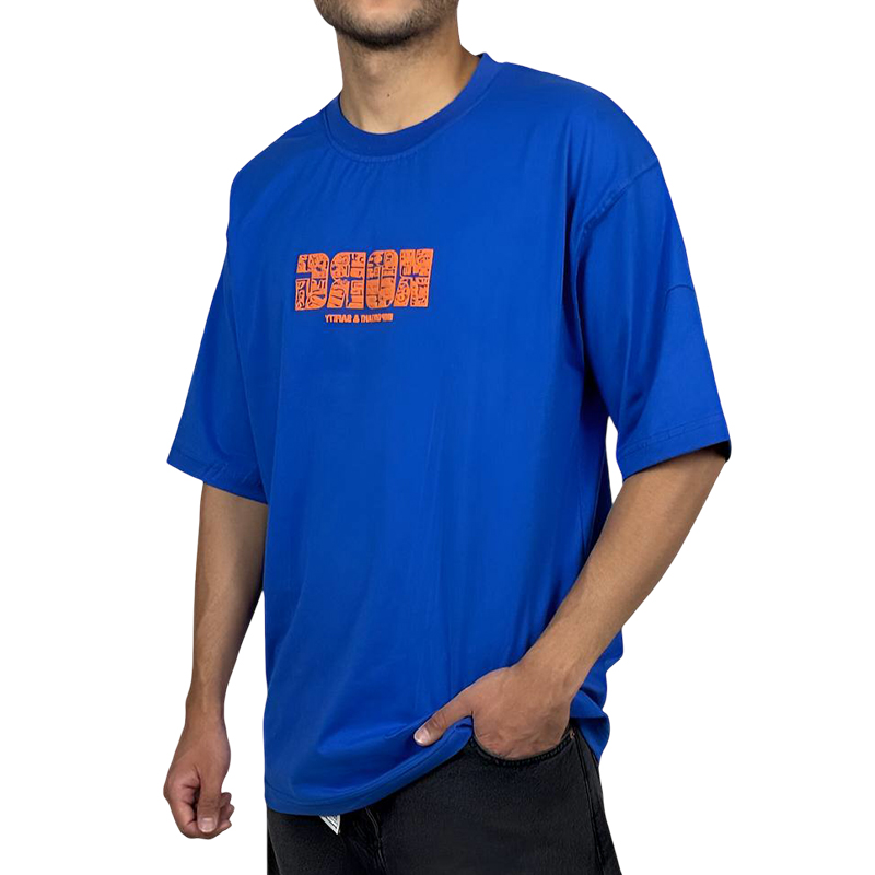 تیشرت آستین کوتاه مردانه آبی چاپ دار