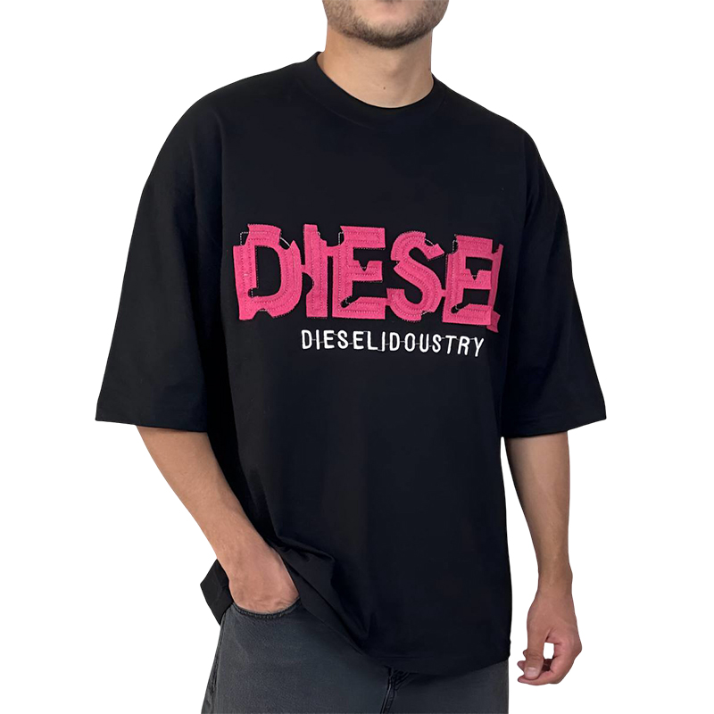 تیشرت آستین کوتاه مردانه مشکی با طرح گل دوزی