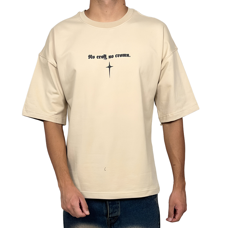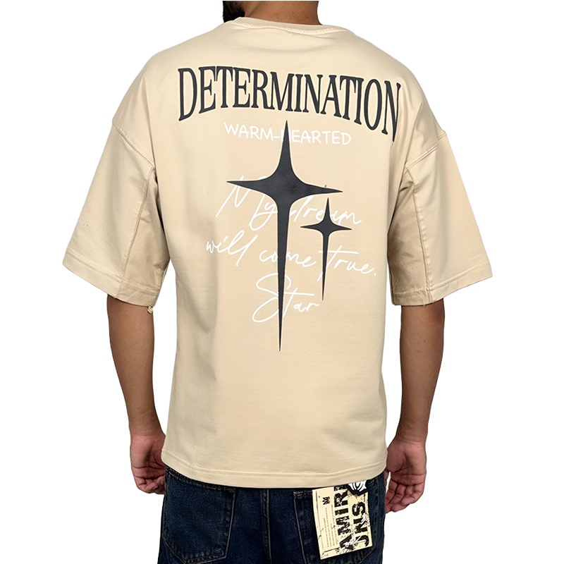 تیشرت آستین کوتاه مردانه کرمی طرح باکسی