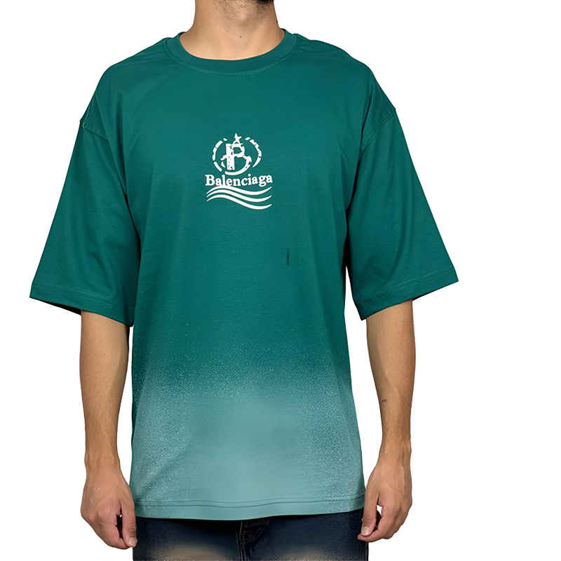تیشرت آستین کوتاه مردانه سبز چاپ بالنسیاگا