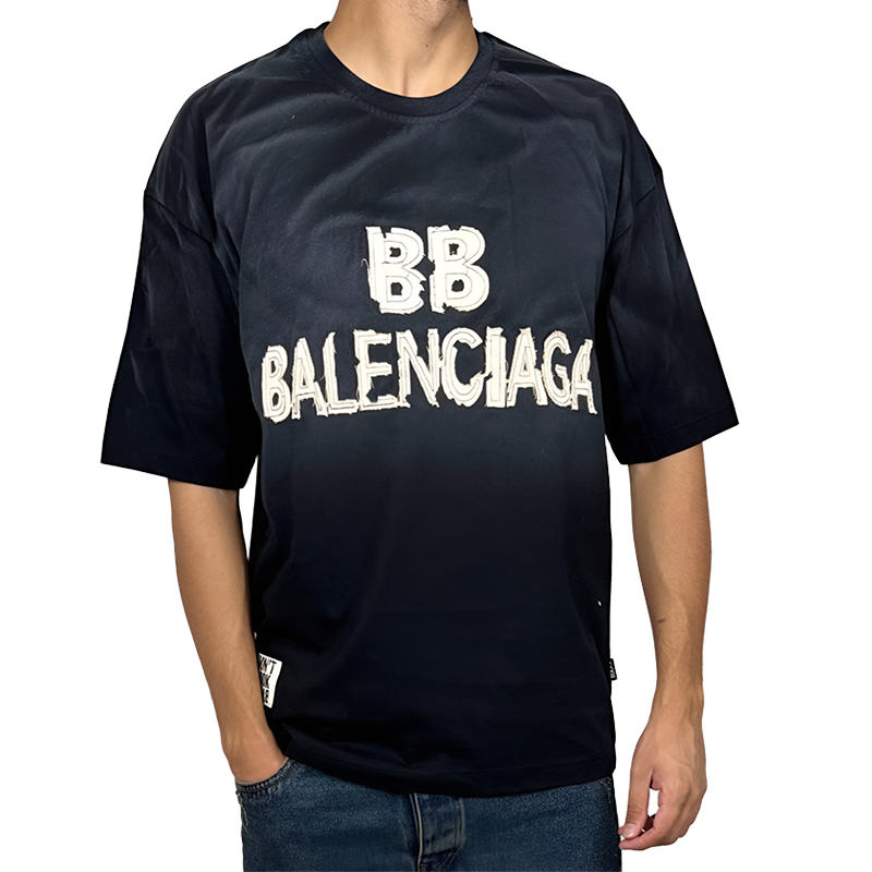 تیشرت آستین کوتاه مردانه مشکی چاپدار بالنسیاگا
